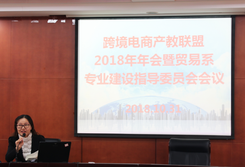 10月31日下午1:30,跨境电商产教联盟2018年年会暨贸易系专业建设指导委员会会议在我校行政楼第一会议室隆重召开。新辰控股有限公司跨境部门项目经理李金徽、运河国际跨境电商产业园运营经理胡倩敏、西湖跨境电商产业园常务副总郑林福、杭州赢动电商学院总裁崔立标、浙江携职就业创业学院教育事业部主管和阿里巴巴百城千校人才拍档殷志平、杭州信天翁进出口有限公司业务部经理夏霄、杭州口岸国际物流有限公司业务经理余德铮、宁波昕翼供应链管理有限公司杭州分公司总经理王科君、杭州哈德昂电子商务有限公司总经理邱定国等九位企业嘉宾,浙江长征职业技术学院校企合作处处长张崇利教授、督导室主任高晓红教授、贸易系主任张琼教授、贸易系副主任王珍教授以及贸易系全体教师和20名学生代表出席了会议,会议由贸易系副主任王珍教授主持。
