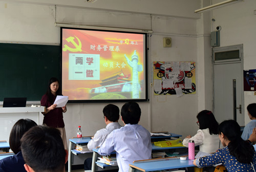 2016年5月18日下午,在一号教学楼1113教室财务管理系举行“两学一做”学习教育动员大会,对在全系教师党员和学生党员中开展“两学一做”学习教育进行动员部署。学院副