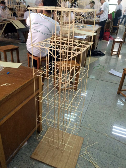 本次大赛的目的是为了培养大学生的创新思维和实际动手能力,培养团队精神,增强大学生工程结构设计与实践能力,丰富校园学术氛围,促进浙江省高校大学生创新创业和相互交流与学习。大赛分为理论方案上报,现场模型制作,模型加载三个部分。参赛队伍来自全省49所本专科高校,102支队伍。我院建筑工程系也是首次参加省结构大赛,经过层层考核,建筑工程系1队脱颖而出,获得三等奖的好成绩,可谓首战告捷。