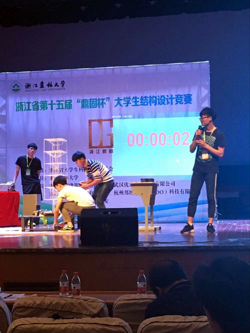 2016年5月13至15日,由浙江省大学生科技竞赛委员会主办的浙江省第十五届“鼎固杯”大学生结构设计竞赛在浙江农林大学举行,我院由建工系吕伟老师、毛家臣老师和章剑飞老师带队的6名学生,两支队伍参加比赛,经过3天的激烈角逐,学生凭借扎实的理论功底及专业素养,融合开拓创新的思维获得了三等奖的好成绩。