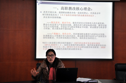 党委副书记张乐弟作《我院2014年各专业招生就业形势分析及对策》专题讲座