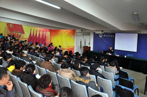 12月17日下午,中国职业技术教育学会副会长、民办分会会长俞仲文莅临我院,并作了题为《加快转型升级,努力打造高水平、有特色的浙江长征职院》的报告。学院领导、全体教师和辅导员参加,执行院长吕振合教授主持了报告会。