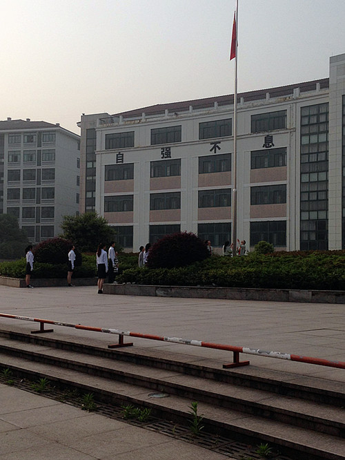 晨曦微露,升旗仪式开始。在全体学生的注目下,英姿飒爽的国旗护卫队员们身着统一的服装,迈着整齐的步伐,护送鲜艳的五星红旗进场,“出旗、立正、敬礼、升旗”国旗手把国旗向空中扬起,伴随着庄严的《义勇军进行曲》,五星红旗冉冉升起,迎风飘扬,在场的每个人庄重地向国旗行注目礼。升旗仪式结束后,学生代表王莹琪在国旗下进行了生动的演讲。正如她所说,今天我们是桃李芬芳,明天我们将会成为社会栋梁,在世界化潮流不可逆的当代,我们怎能不奋斗?