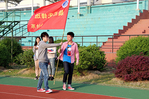 为了更好的开展晨练,促进同学们对晨跑运动的积极性,会计系特开展晨跑先锋评选活动,并于2013年4月15日早上6点30分在学校操场举行了“晨跑先锋”授旗仪式。