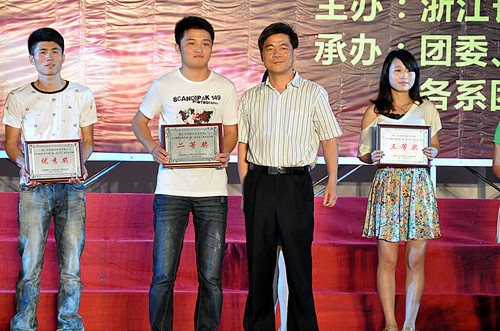 杭州团市委学校部部长茹意为获奖代表颁奖