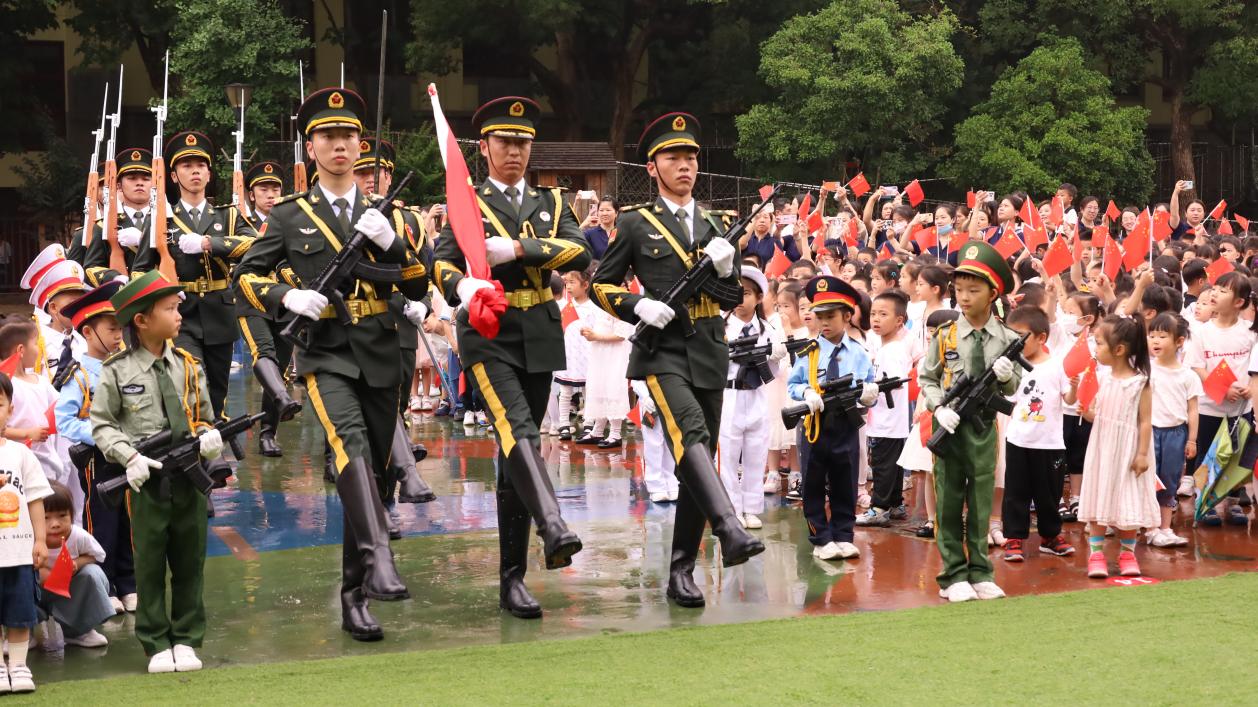 为激发孩子们的爱国热情,增强其对国旗知识的了解,近日,西湖区退役军人事务局组织由我校退役大学生士兵组成的“迷彩再长征”仪仗队走进浙江师范大学幼教集团,用庄严的升旗仪式给小朋友们上了一堂生动的爱国主义教育课。西湖区退役军人事务局主要领导、浙江师范大学幼教集团负责人和全体师生800余人参加。