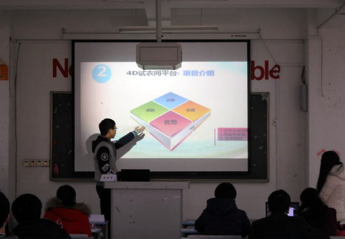决赛现场座无虚席,除了参赛选手之外,对电子商务创新创业感兴趣的很多同学都来观赛。商务系主任也赶到现场致辞,他强调了大学生创业的重要性,学院对大学生创业的鼓励扶持政策,给参赛选手和现场其他同学非常大的鼓舞。决赛分为选手10-15分钟的演示文稿阐述,评委提问和选手答辩两个环节,在此过程中,评委老师们与学生们激烈讨论,对学生作品提出了中肯的建议,并围绕作品完整性、可行性、创新性等进行了严格的打分。