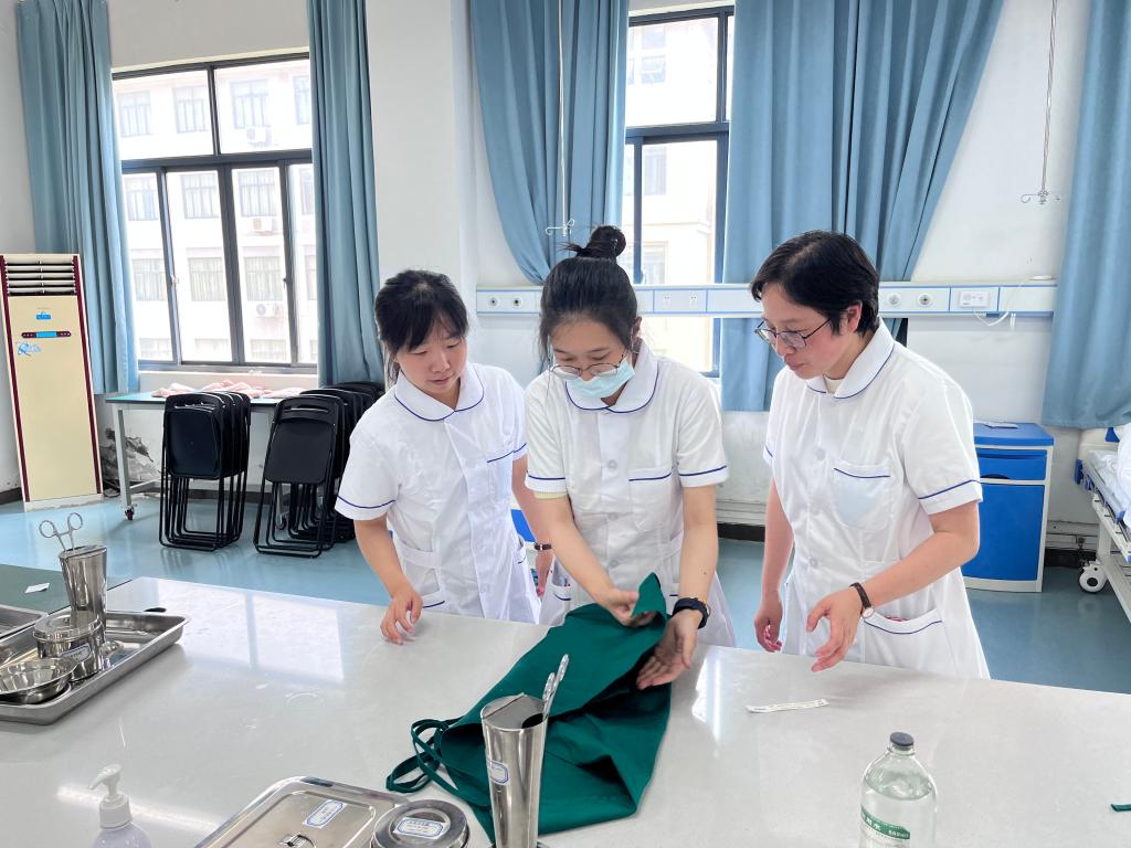 为做好本学期护理专业学生实践学习周培训工作,强化学生基础护理操作技能,近日,护理与健康学院基础护理教研室在实训楼北305和北307实训室开展培训演练。教研室的许优君、徐誉珍、吴一帆等10位老师为培训指导老师。