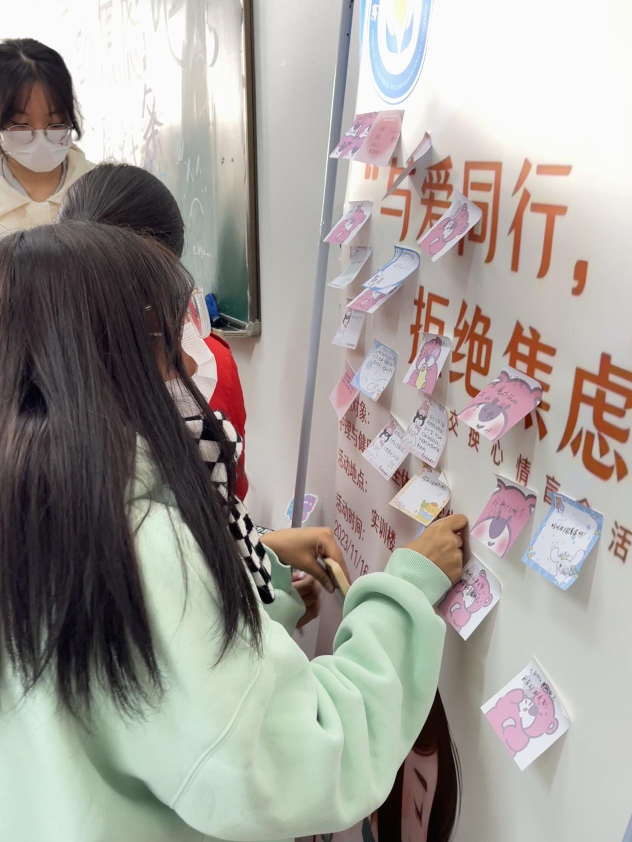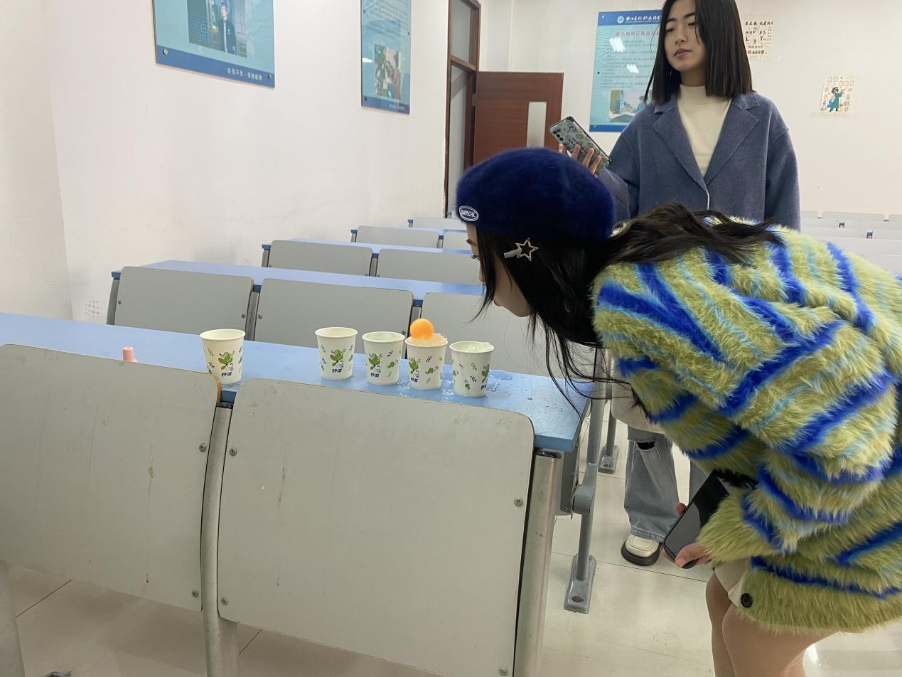 活动现场欢声笑语此起彼伏。在交换心情盲盒的游戏中,同学们在便签纸上认真地写下自己的祝福并放入盲盒;在绕口令游戏中,同学们围在一起磨炼嘴皮子,互相加油打气。在跳长绳游戏和两人三足等集体游戏中,同学们相互扶持,携手前进,跨越了一个又一个障碍,展现了高度的团队精神。