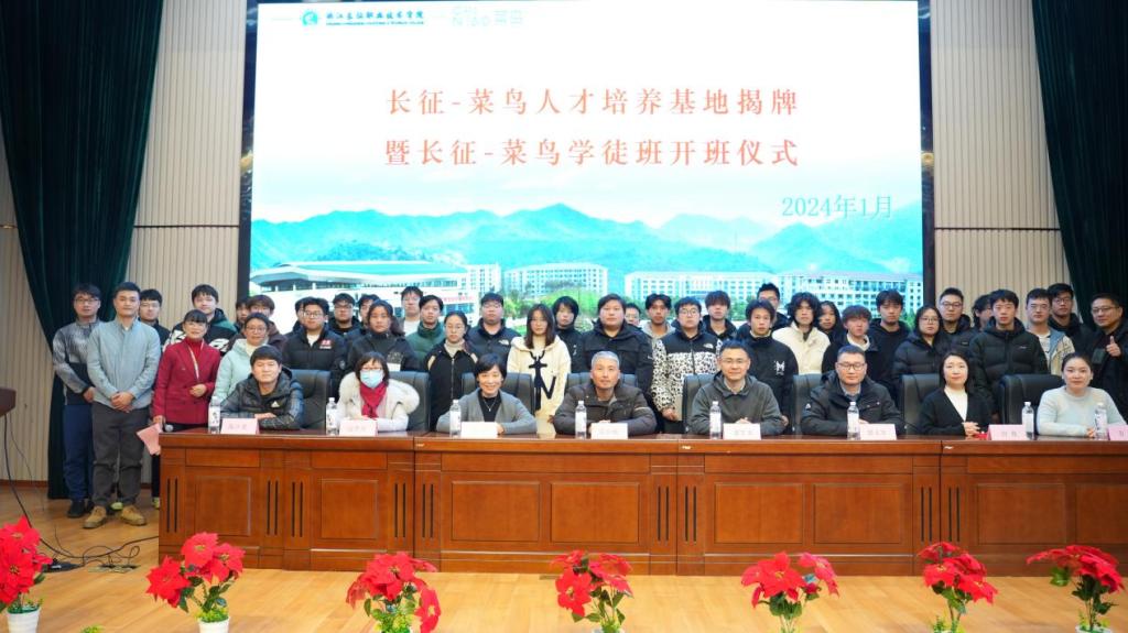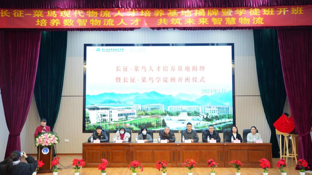 近日,学校“长征-菜鸟现代物流人才培养基地”揭牌暨“2022级长征-菜鸟学徒班”开班仪式在第二报告厅顺利举行,学校教务处副处长吴少俊、商务与贸易学院党政领导班子,菜鸟速递分拨负责人董军本、菜鸟速递裹配线中转管理中心运营支持经理薛永军、菜鸟速递裹配线CPO组招聘经理白佳、菜鸟速递裹配线营运管理中心浙沪大区分拨&运输HRG方菁、菜鸟速递浙沪大区杭州集散负责人魏周翔、菜鸟速递浙沪大区精益负责人丁正地,及师生代表参加了此次活动。