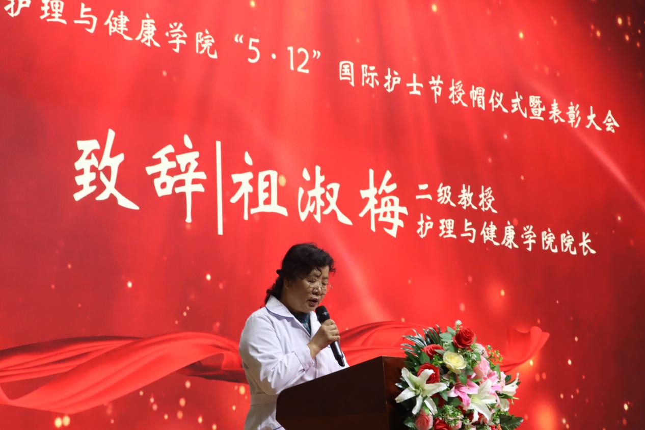 活动伊始,护理与健康学院院长祖淑梅致辞。她代表学院向护理工作者、护理教育工作者和同学们致以节日的祝贺,对到会嘉宾表示热烈的欢迎和真挚的感谢。祖院长强调了护士在推动健康中的重要作用。她表示,护士发展与时代发展紧密联系,作为护理学子要具有扎实的操作功底,学习新知识,掌握新技术;要拥有一颗温暖而坚韧的心,要用爱关怀脆弱的生命。