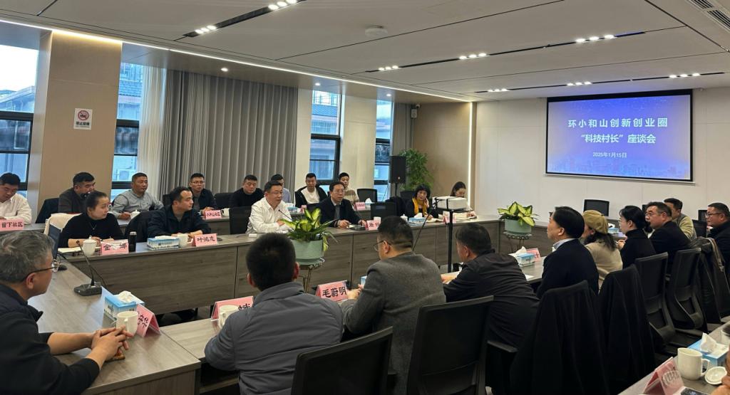 演出结束后,召开了环小和山创新创业圈“科技村长”座谈会,留下街道领导、各村社“科技村长”、校地协同促进中心负责人、各村社书记参加会议。